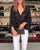 Bluse lässig V-Ausschnitt hohl einfarbig