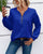 Lässiges, einfarbiges langarmhemd mit v-ausschnitt und knopfleiste