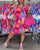 Bunt bedrucktes Kleid mit Taschen und V-Ausschnitt