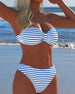 Badeanzug Hohe Taille Gestreift Dreieck Zweiteilig