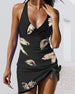 Kleid mit V-Ausschnitt kurze Ärmel Taillenfalten bedruckt