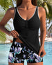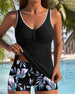 Neckholder-tankini-badeanzug mit plissiertem blumendruck