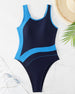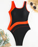 Modischer einteiliger Badeanzug in Kontrastfarben