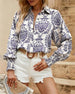 Bluse Mit Retro Knopf Details Und Kleine Florale Drucke