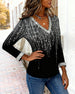 Bluse Spitze Eingesetzt Langarm V-Ausschnitt