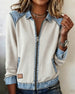 Icon1 Mantel Revers Reißverschluss Denim Patchwork