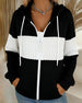 Color-blocking Mantel mit Kapuze und Reißverschluss