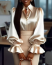 Icon1 Bluse elegante Satin mit Trompetenärmeln