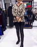 T-Shirt Fake Zweiteiler Schnürung Leopardenmuster