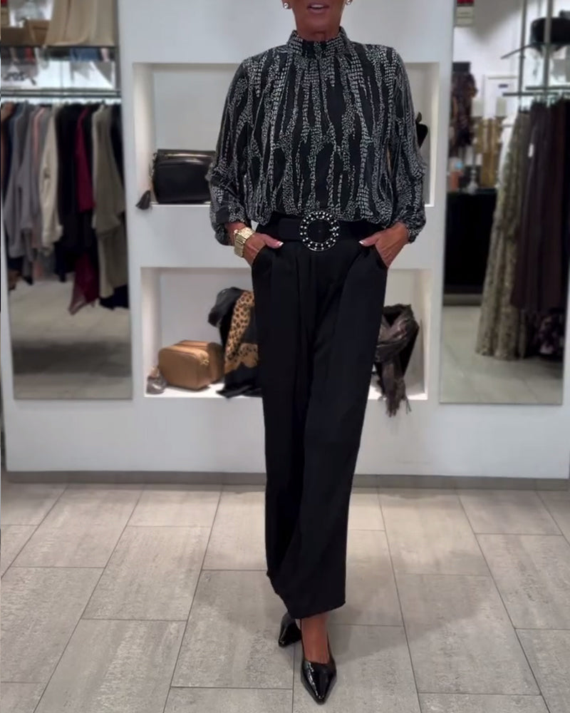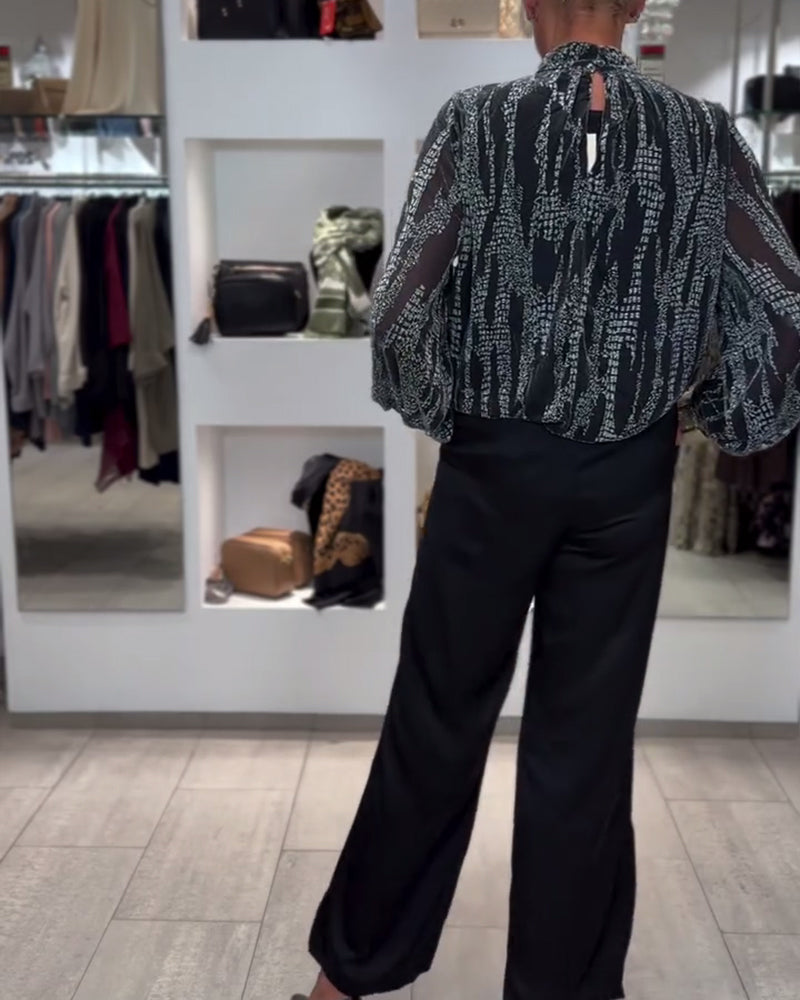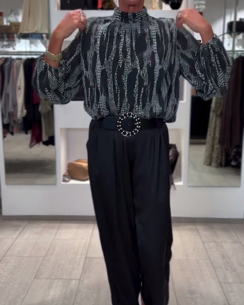 Icon1 Bluse Modisch Halber Stehkragen Gedruckt