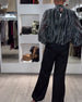 Langärmlige Bluse mit unregelmäßigem Fledermaus-Print
