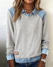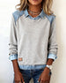 Bluse Uni-Farbe Revers Spitze Patchwork