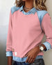 Sweatshirt Knopf-Revers Colorblock Genaht