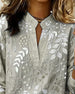 Bluse Gemustert V-Ausschnitt Puffärmel