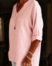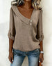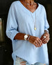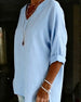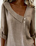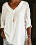 Top V-Ausschnitt Sieben-Ärmel Geteilt Baumwolle Leinen