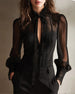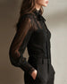 Bluse Spitzeneinsatz Stehkragen Schleife