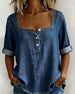 Hemd Quadratischer Ausschnitt Denim Halbarm