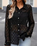 Bluse Uni-Farbe Revers Spitze Patchwork