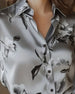 Bluse Rüschenkragen bedruckter V-Ausschnitt
