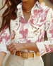 Bluse Rüschenkragen bedruckter V-Ausschnitt