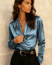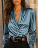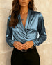 Schlichte Unifarbene V-Ausschnitt-Bluse Mit Elegantem Stil