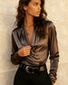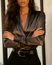 Top sexy V-Ausschnitt Mesh und einfarbig Pailletten