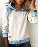 Lässiger kapuzenpullover mit reißverschluss und patchwork-muster aus denim