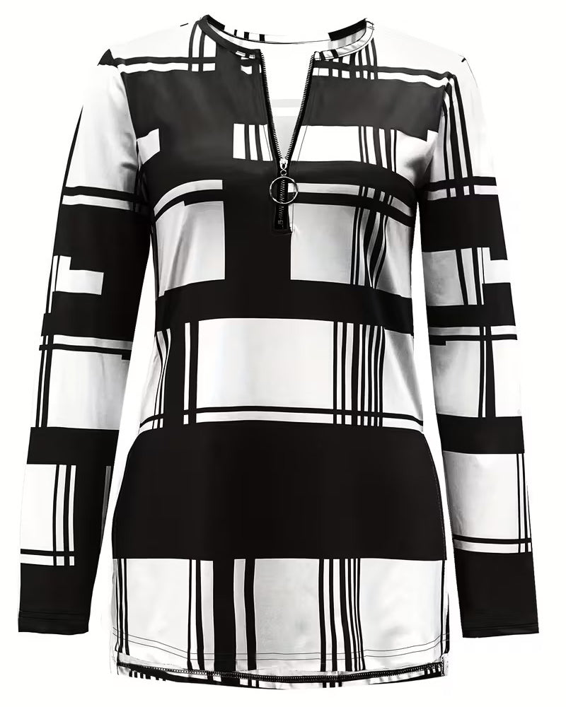 Langärmlige Bluse mit unregelmäßigem Fledermaus-Print