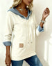 Sweatshirt lässig V-Ausschnitt mit Kapuze einfarbig locker