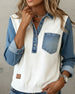 Bluse Uni-Farbe Revers Spitze Patchwork