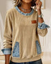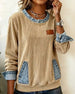 Bluse Uni-Farbe Revers Spitze Patchwork