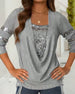 bedrucktes Oberteil mit langen Ärmeln im Fake-Zweiteiler-Design