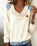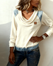 Bluse Uni-Farbe Revers Spitze Patchwork