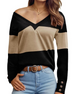 Icon1 T-Shirt Damen Colorblock Druck Knopf Deko Fallende Schulter
