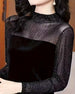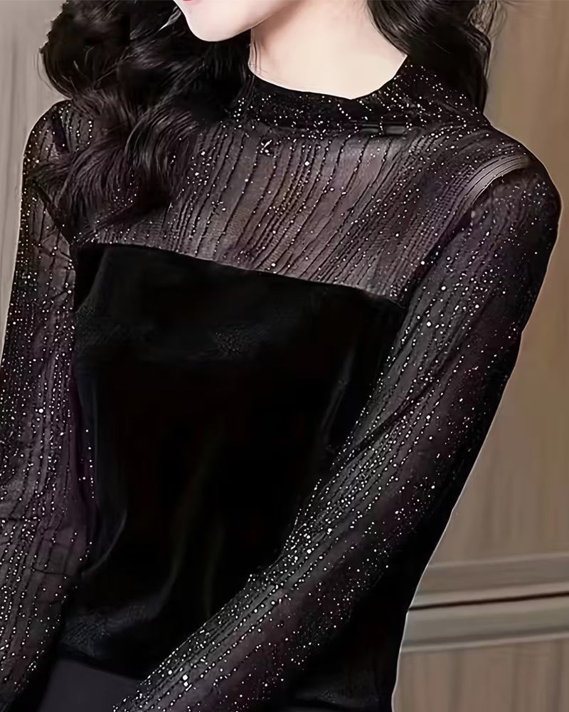 Top sexy V-Ausschnitt Mesh und einfarbig Pailletten