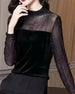 Bluse Uni-Farbe Revers Spitze Patchwork