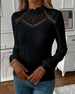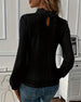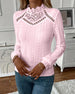 Bluse Uni-Farbe Revers Spitze Patchwork