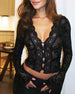 Langarm-Spitzenoberteil mit V-Ausschnitt