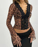 T-Shirt Fake Zweiteiler Schnürung Leopardenmuster