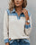 Lässige Langarmbluse mit V-Ausschnitt und Kontrastfarbdruck