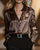 Bluse Lockeres Leopardenmuster Halbe Knopfleiste