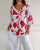 Bluse Vielseitig V-Ausschnitt Bedruckt Halbe Ärmel