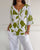 T-Shirt V-Ausschnitt Blattmuster Casual