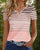 SPEZIFIKATIONEN Oberteil Typ: T-shirt Stil: Zwanglos Material: Baumwollmischungen Anlass: Täglich Ausschnitt: V-Ausschnitt Muster Typ: Gestreift Ärmel Typ: Regulärer Ärmel Ärmellänge: Kurze Ärmel Passform Typ: Normal Jahreszeit: Frühling,Sommer Paket enthält: 1 x T-shirt GRÖSSENTABELLE (cm) Größe Brsutmfang Länge S 97 68 M 101 69.5 L 1...