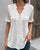 SPEZIFIKATIONEN Oberteil Typ: Blusen Stil: Zwanglos Material: 100% Polyester Anlass: Täglich Ausschnitt: V-Ausschnitt Muster Typ: Einfarbig Ärmel Typ: Regulärer Ärmel Ärmellänge: Kurze Ärmel Passform Typ: Normal Jahreszeit: Frühling, Sommer, Herbst Einzelheiten: Knöpfe, Kordelzug Paket enthält: 1 x Bluse GRÖSSENTABELLE (cm) Größe...