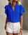 Bluse V-Ausschnitt Doppeltes Rüschenshirt Kurzarm