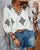 Bluse mit V-Ausschnitt Diamantmuster Dreiviertelärmel