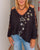 Bluse lässig V-Ausschnitt Leopardenmuster Spitzeneinsatz