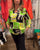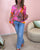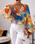 Bunt bedruckte bluse mit v-ausschnitt und laternenärmeln