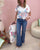 Bedruckte Bluse mit V-Ausschnitt und Rüschenärmeln im Patchwork-Stil